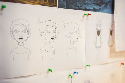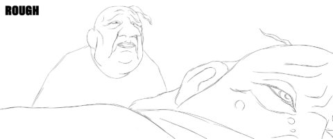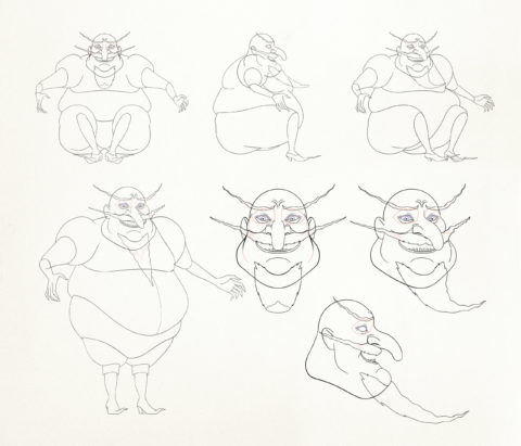 Rough: small vignettes and key poses sketch out the action, rhythm, and intention of the shot. The animators establish timing, silhouette, expression and spacing without worrying about line quality.