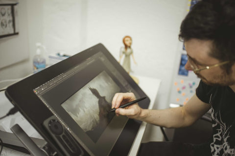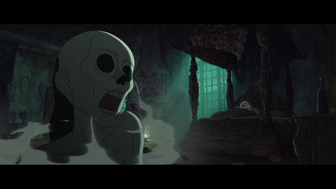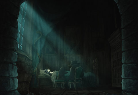 When production finally began in early 2019, I spent the first year surrounded by animators, cleanup artists, and motion designers who brought each shot to life. Then came 2020: alone in the studio, I painted the watercolor backgrounds during lockdowns. The story resonated eerily with the pandemic—the Plague warning feels relevant. In my version, the hundred‑year‑old Winemaker deliberately frees Death out of love for Mathilde—love as both drive and transgression, at the story’s core. Through these unsettling images that reflect human anxieties, I still sought to distill beauty and magic.