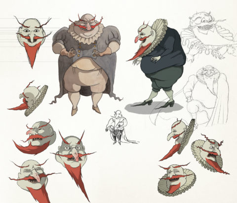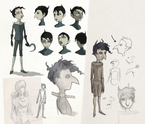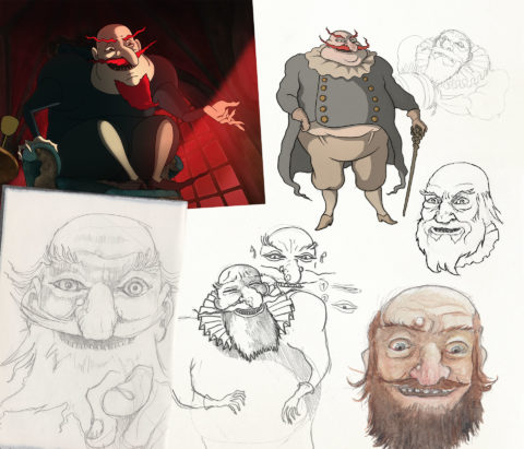 A decisive sketch emerged: a face immediately recognizable thanks to its oversized nose—a feature meant to provoke curiosity and discomfort. I wanted the audience to ask, “Why such a nose?”—the answer revealed at the climax, when we learn the Winemaker’s responsibility for the plague’s spread. His profile already evokes the plague‑doctor mask; he carries in advance the mark of the Death he will release. By silhouette alone, the character becomes a living allegory, foreshadowing the tragedy.