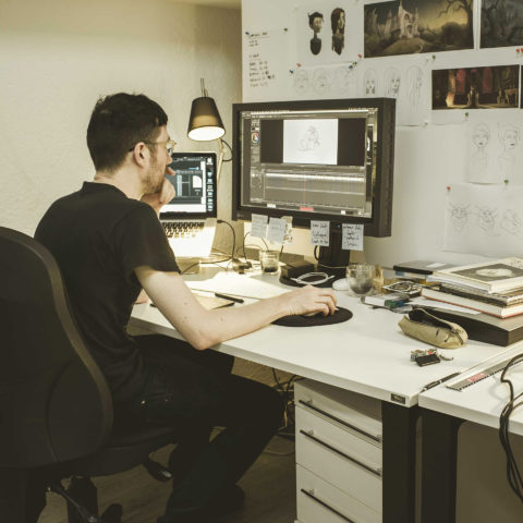 Compositing: the last stage merges animation, colors, shadows and background. Light effects, particles, motion blur, possible camera moves and color grading are added. The compositor balances each layer to deliver the finished shot, ready for editing.